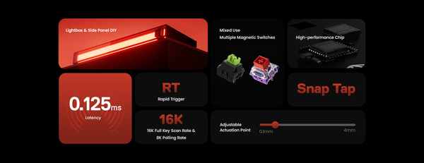 Bàn phím HE MelGeek MADE68 Ultra 8K là bàn phím cơ cao cấp sử dụng công nghệ Hall Effect, đạt độ trễ cực thấp chỉ 0.125ms với Polling Rate 8000Hz và Scan Rate 16K. Switch TTC KOM Magnetic độc quyền hỗ trợ Rapid Trigger và Snap Tap, cho phép tùy chỉnh hành trình phím từ 0.1-4.0mm với độ nhạy 0.01mm. Công nghệ này tối ưu cho các game FPS/MOBA (như Valorant, CS2), mang lại phản hồi tức thì, định vị chính xác, và khả năng thực hiện combo nhanh, giúp game thủ chiếm ưu thế trong mọi trận đấu.