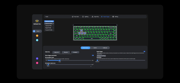 MADE68 Ultra 8K sử dụng vật liệu cao cấp với khung nhôm 6063 CNC và switch từ tính TTC KOM (100 triệu lần nhấn), giảm hao mòn cơ học và tiếng ồn khi gõ. Hot-swappable hỗ trợ thay switch từ tính (như Gateron Magnetic hoặc Kailh Hornet), mang lại trải nghiệm cá nhân hóa. Phần mềm MelGeek HIVE cho phép tùy chỉnh hành trình phím, macro, ánh sáng, và 4-in-1 DKS (Dynamic Keystroke) để gán nhiều hành động trên một phím. Thuật toán lọc độc quyền và chip Nordic kép đảm bảo độ ổn định, với cập nhật firmware hàng tuần để tối ưu hiệu suất.