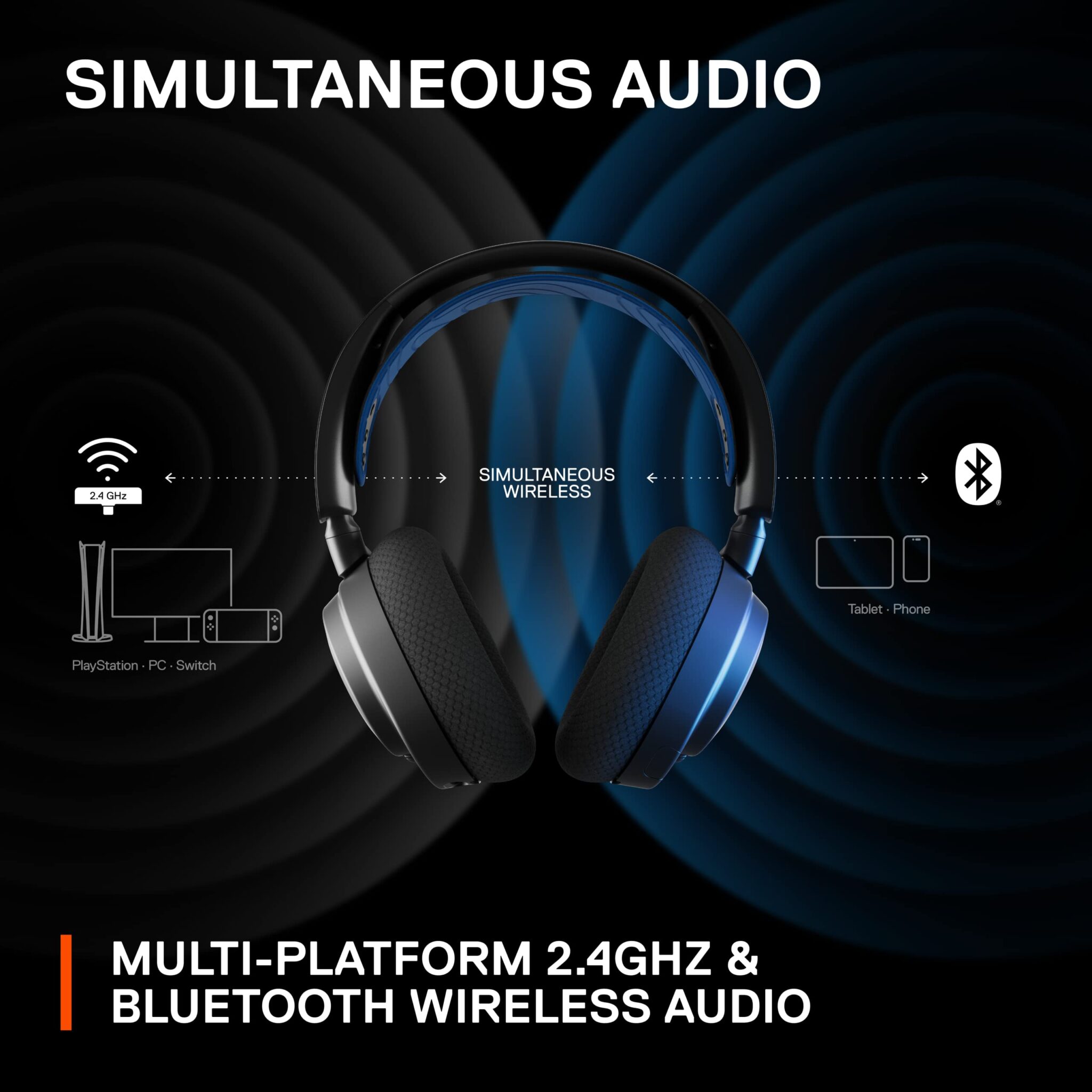Điểm cộng thêm cho Steelseries Arctis Nova 7P PlayStation phải nói đến chính là microphone lọc tiếng ồn hai chiều vượt trội, giúp loại bỏ tạp âm và giọng nói bạn sẽ được phát ra rõ ràng hơn. Steelseries Arctis Nova 7P PlayStation có thể kết nối với nhiều thiết bị đa dạng, từ Windows 8.1 trở lên và Mac OS 10.13 trở lên,…Hơn nữa, tai nghe còn sở hữu dung lượng pin khủng, lên đến 38 giờ đồng hồ, nên bạn không cần lo sợ tai nghe hết pin giữa chừng khi đang lâm trận nhé!