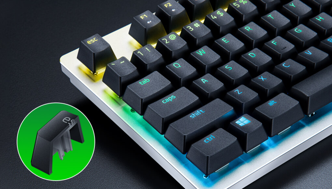 Keycap PBT Razer được sản xuất từ chất liệu nhựa PBT cao cấp, cứng cáp và bền hơn hẳn ABS hoặc PVC thông thường. Cấu trúc dày, chắc chắn giúp hạn chế tối đa hiện tượng mòn phím hay bóng bề mặt sau thời gian dài sử dụng, đồng thời mang lại cảm giác gõ “đã tay”, chính xác.