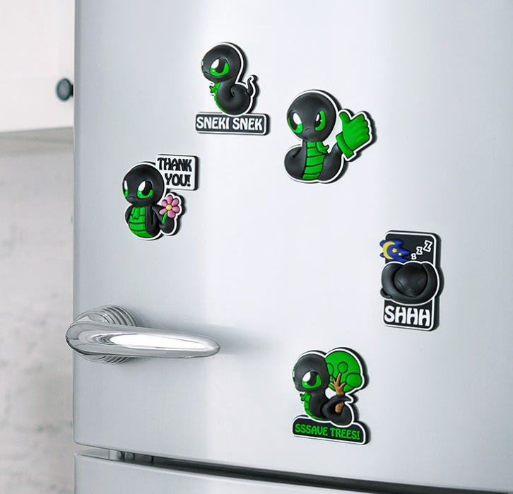 Nam châm được tạo hình từ 100% nhựa PVC chất lượng cao, thể hiện hình ảnh Sneki Snek sinh động, đầy cá tính. Bề mặt nhẵn mịn, màu sắc bền lâu theo thời gian, là điểm nhấn thú vị cho cánh tủ lạnh, bảng từ hay bất kỳ bề mặt kim loại nào.