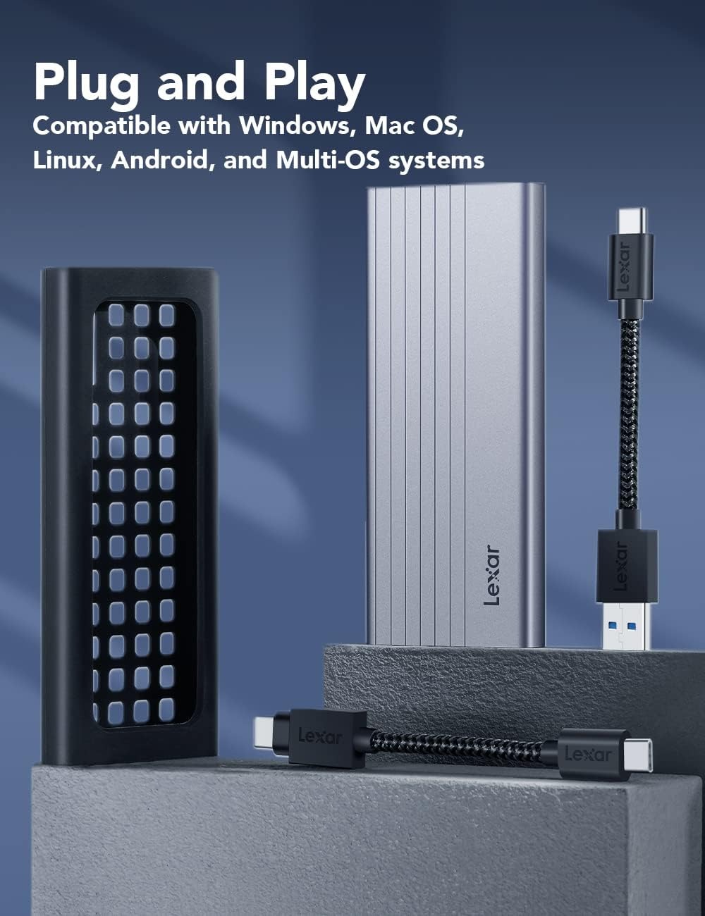 Hộp đựng SSD Lexar E10 tương thích với nhiều hệ điều hành như Windows, macOS, Linux mà không cần cài đặt trình điều khiển. Công nghệ Plug & Play giúp thiết bị hoạt động ngay khi kết nối, phù hợp cho nhiều nhu cầu sử dụng như lưu trữ dữ liệu, sao lưu hoặc di chuyển dữ liệu một cách tiện lợi.