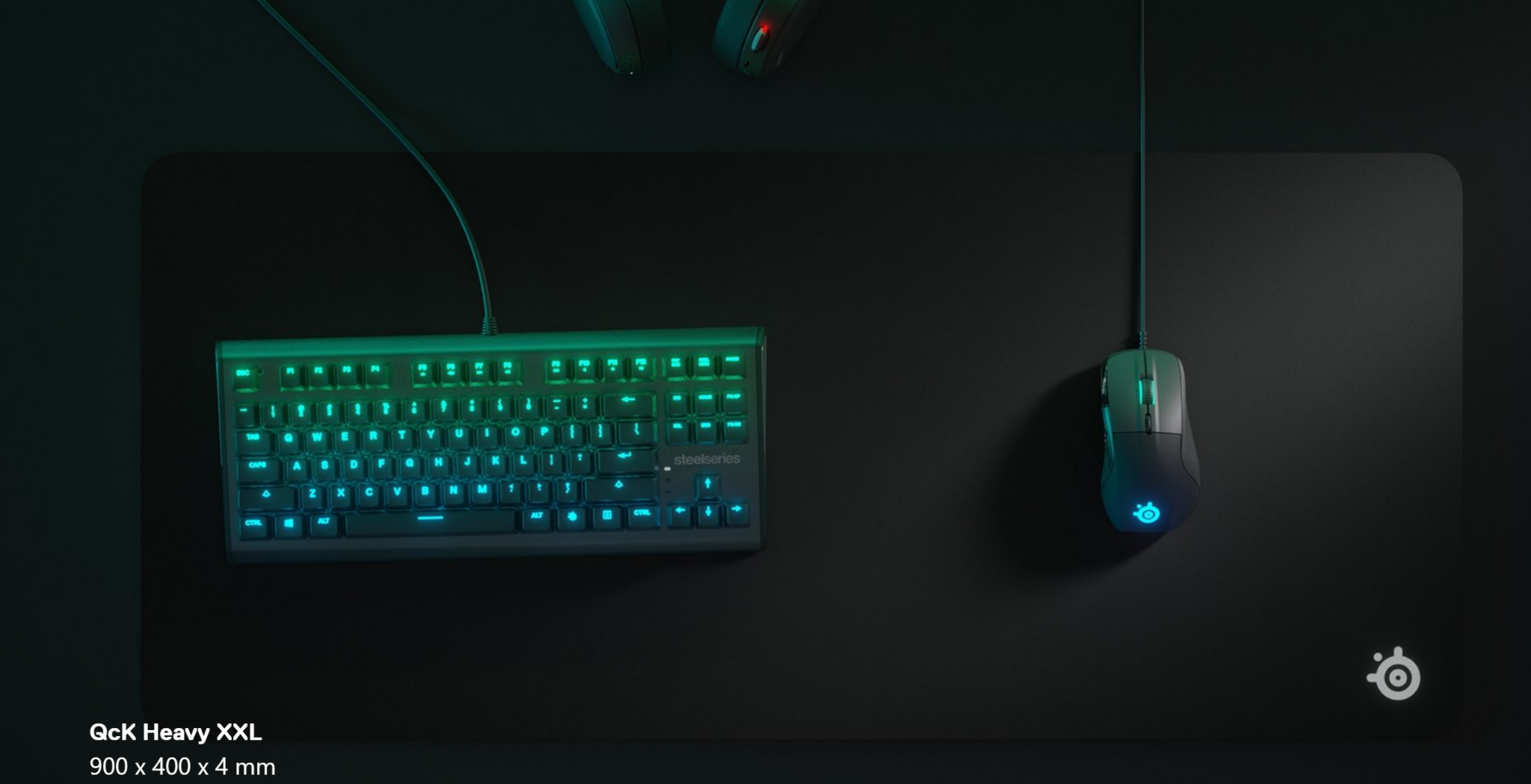 Mặt trên của SteelSeries QCK Heavy là một tấm vải được đệt lên từ những sợi siêu nhỏ, phần đến được làm bằng cao su cực dày 6 mm cố định tấm lót chuột trên bàn, đồng thời cũng là một nền tẳng vững chắc cho cổ tay của người dùng, chống đau mỏi cổ tay.