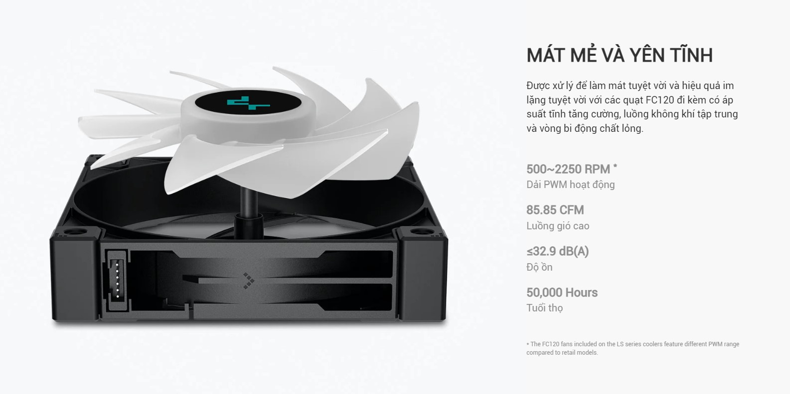 Được đối xử với khả năng làm mát tuyệt vời và hiệu suất im lặng tuyệt vời với các quạt FC120 đi kèm có áp suất tĩnh tăng cường, luồng không khí tập trung và ổ trục động chất lỏng.