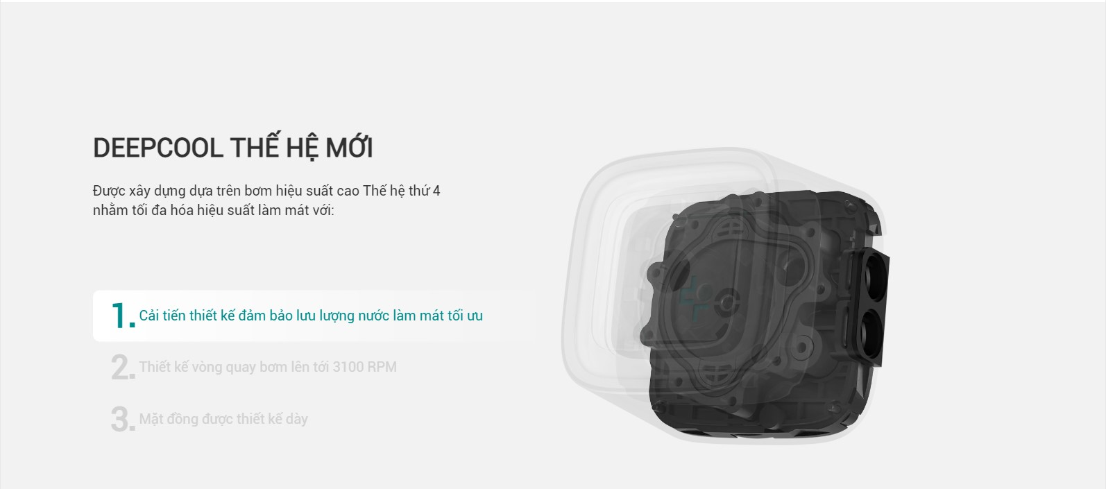 Được xây dựng trên máy bơm nước hiệu suất cao Thế hệ thứ 4 của chúng tôi giúp tối đa hóa hiệu suất làm mát với:
