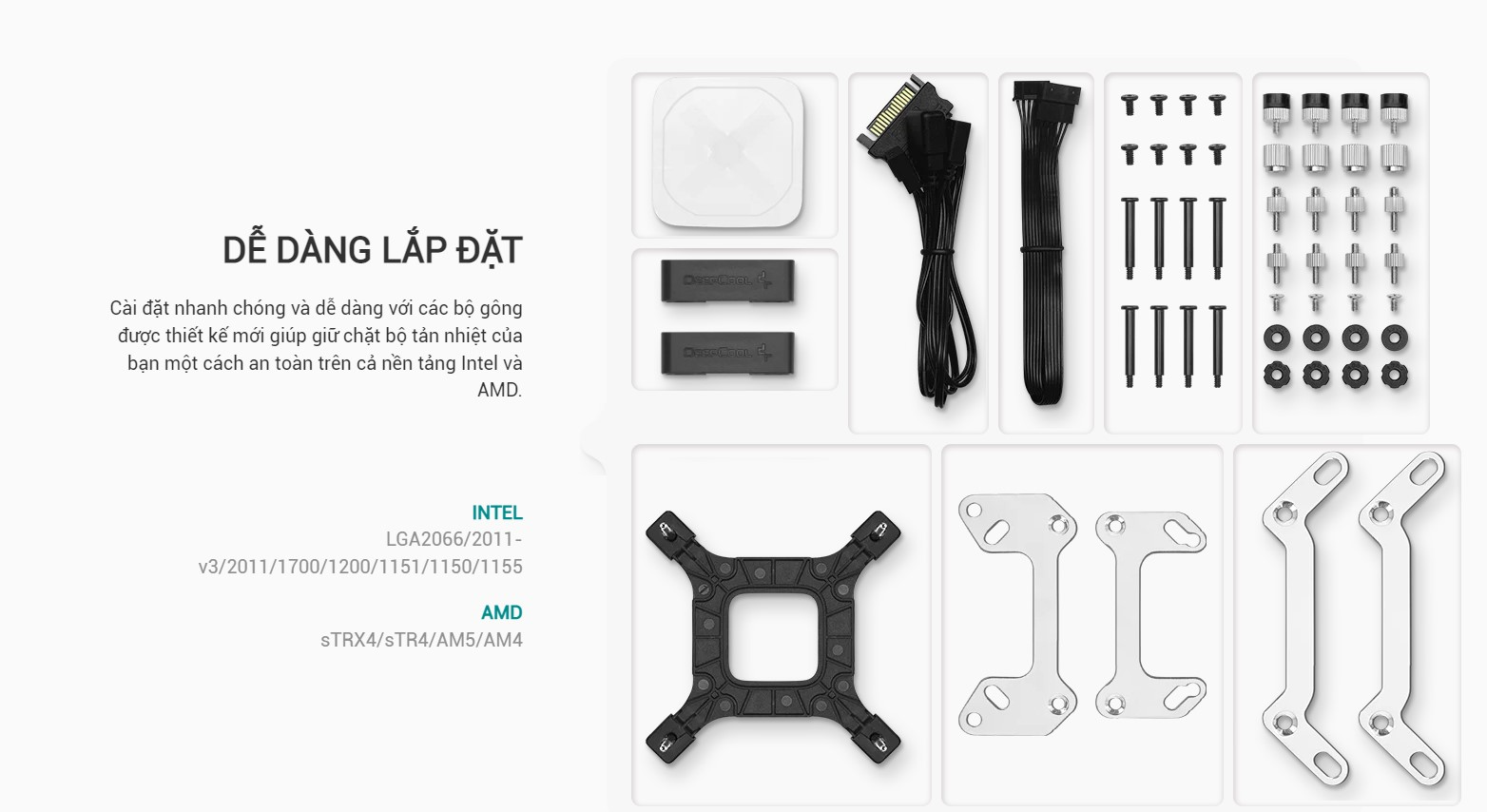 Việc lắp đặt nhanh chóng và dễ dàng với các giá đỡ được thiết kế mới giúp giữ cho bộ làm mát của bạn được cố định an toàn trên cả nền tảng Intel và AMD.