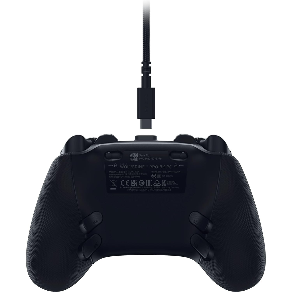 Razer Wolverine V3 Pro 8K PC hỗ trợ cả kết nối không dây qua USB-A dongle và có dây qua USB-C với cáp dài 2m, đảm bảo độ ổn định và tốc độ tối ưu cho mọi tình huống thi đấu.