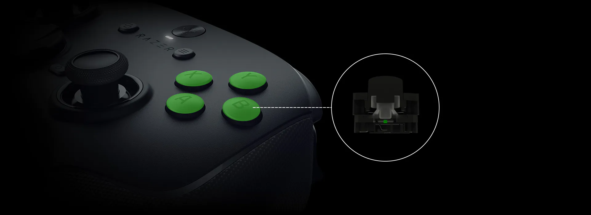 Thumbstick TMR từ tính đối xứng được tinh chỉnh cho độ chính xác pixel hoàn hảo, chống drift, với núm thumbstick thay thế. Chiến thắng với aim laser-sharp và kiểm soát in-game chính xác nhất.