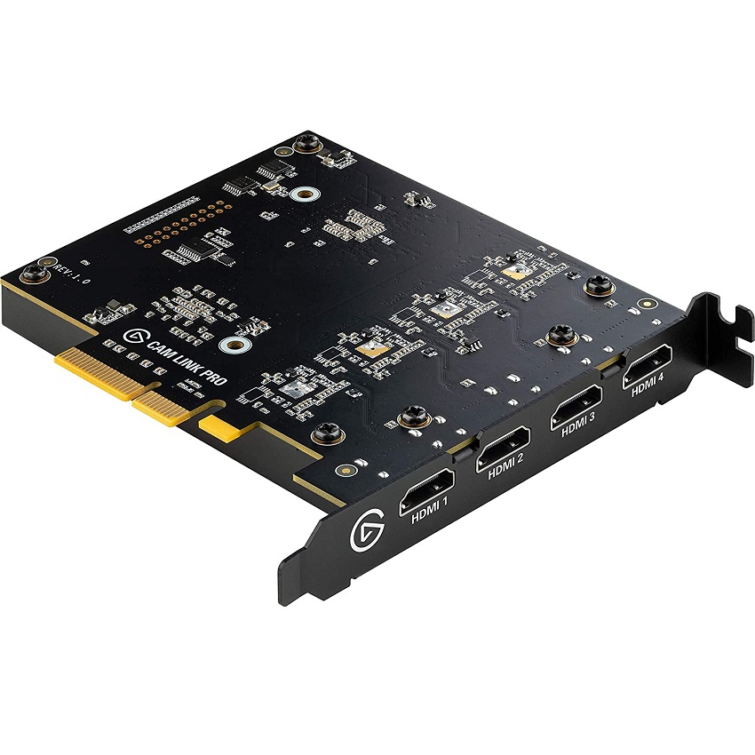 Với kích thước 121.67 x 55.88 x 19.05 mm và trọng lượng 105g, Cam Link Pro sử dụng giao diện PCIe 2.0 x4, tích hợp dễ dàng vào PC. Bốn cổng HDMI 2.0 hỗ trợ tín hiệu không mã hóa, cho phép kết nối camera, máy quay, laptop, tablet, hoặc console để quay đa góc độ.